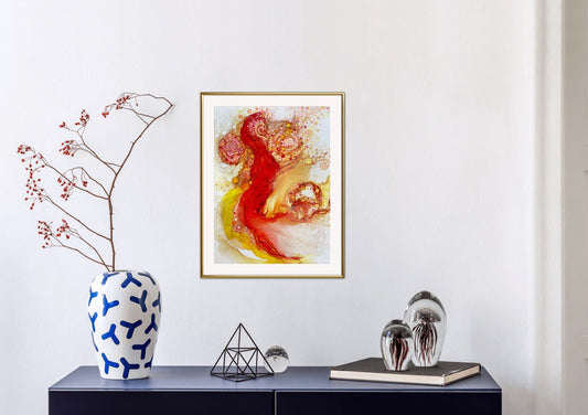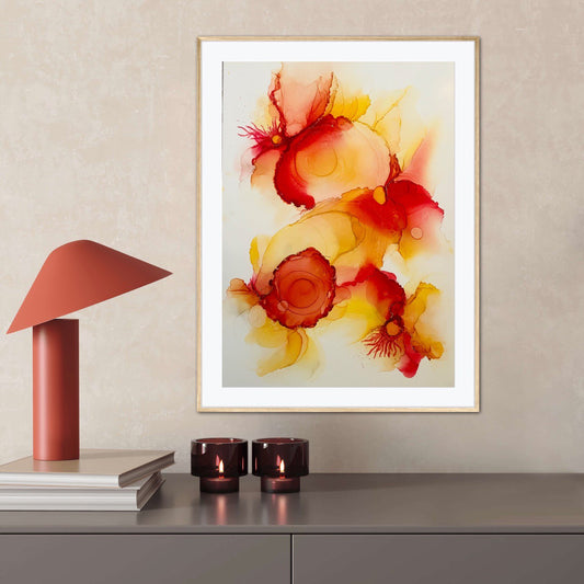 Fiery Blossoms, 2024. Handmade Original Ink Art Picture. 13.5 x 19 inches; 34 x 48 cm. A Perfect Addition to Your Home Decor. Frames Available for Extra Charge