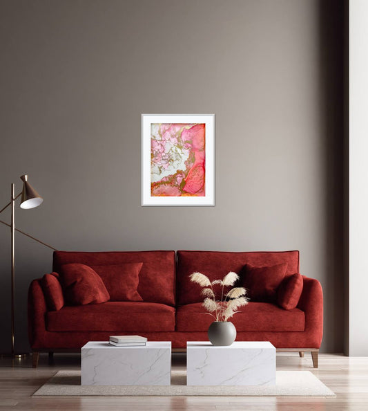 Blush and Gold Elegance, 2024. Handmade Original Ink Art Picture. Size A4: (21.0 x 29.7 cm) (8.3 x 11.7 inch).
